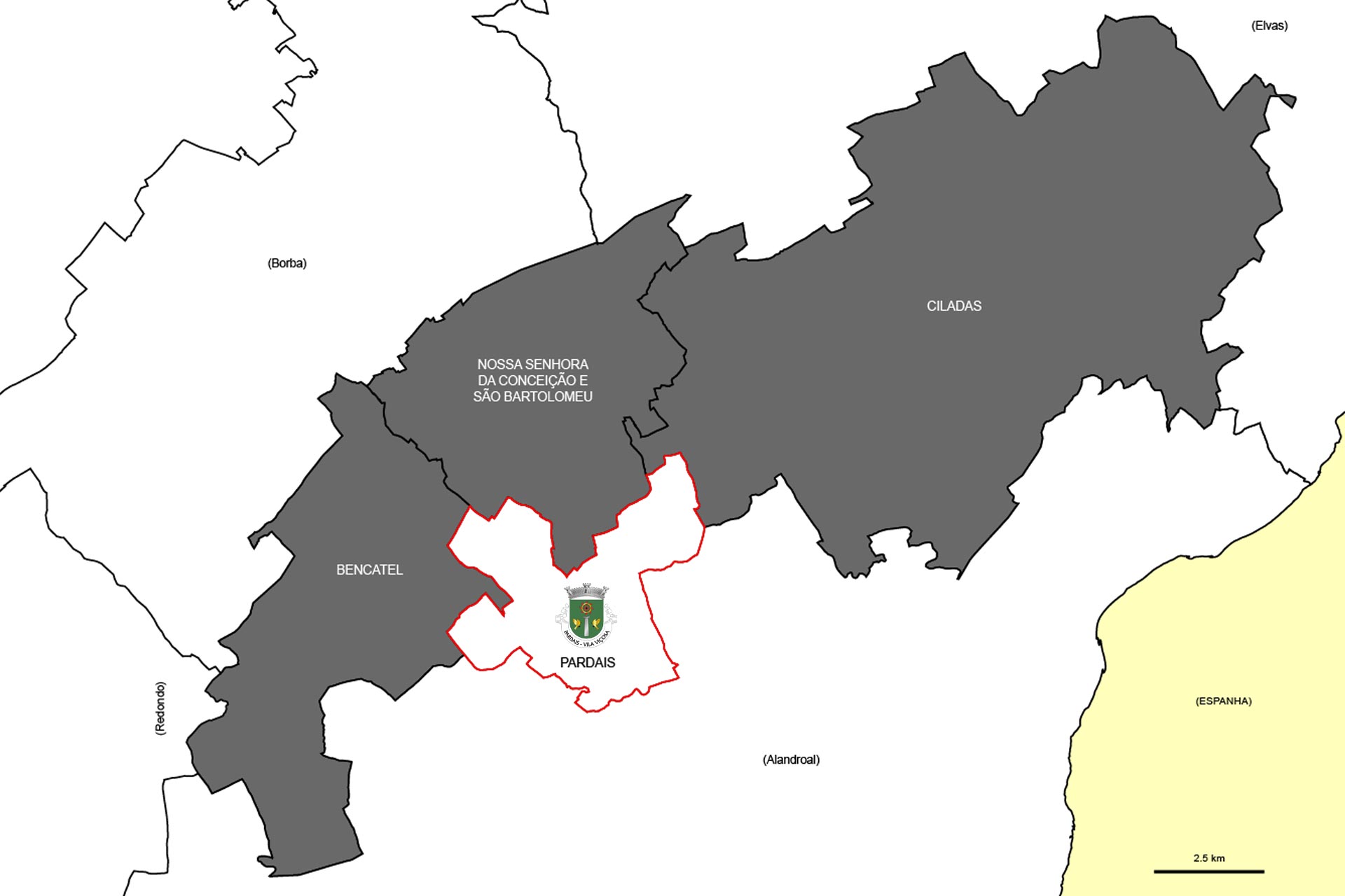 A Freguesia de Pardais situa-se no Alto Alentejo - Distrito de Évora - Concelho de Vila Viçosa com uma área de 17,95 Km2 e 457 habitantes (censo de 2021) a sua densidade populacional é 25,45 hab./km².